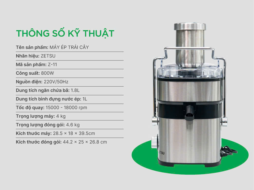 Nếu bạn cần một máy ép trái cây nhanh, mạnh mẽ, bền bỉ, phù hợp kinh doanh, ZETSU Z-11 chính là lựa chọn lý tưởng! ?